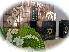 • The Jewish Bar & Bat Mitzvah Service (JBMS) offers you a complete and elegant Bima, including an authentic handwritten Torah with silver Yad, a Torah Ark, a specially designed Torah table, matching Cantor’s podium, decorative side panels, and an excellent sound system, converting your location into a lovely synagogue setting.